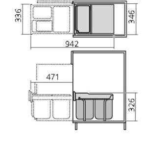 Poubelle tri 3 bacs 18 + 8,5 + 8,5L