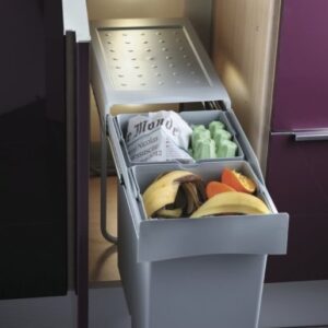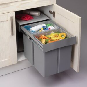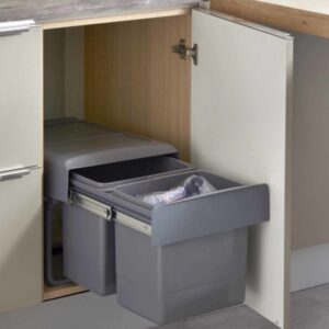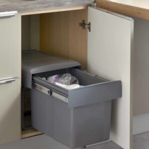 Un énorme choix de poubelles et vide déchets pour la cuisine, poubelle coulissante pour tri sélectif, 1 bac, 2 bacs, 3 bacs en plastique ou en inox jusqu’à 70 litres de contenance.