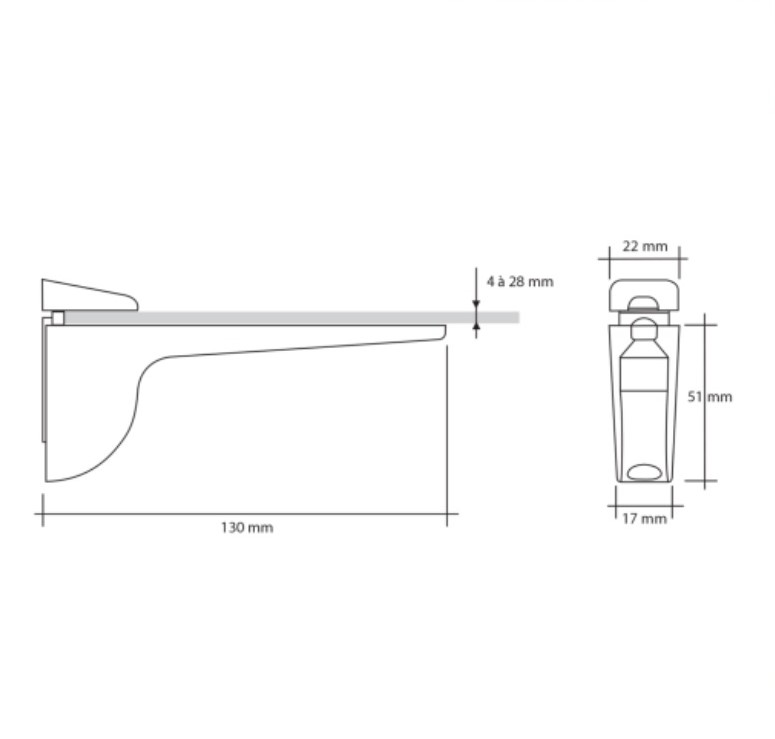 Nous vous proposons un lot de deux Supports Tablette d’une longueur de 130mm permettant de fixer des tablettes en verre ou en bois de 4 à 28mm d’épaisseur, et de profondeur maxi 30cm.