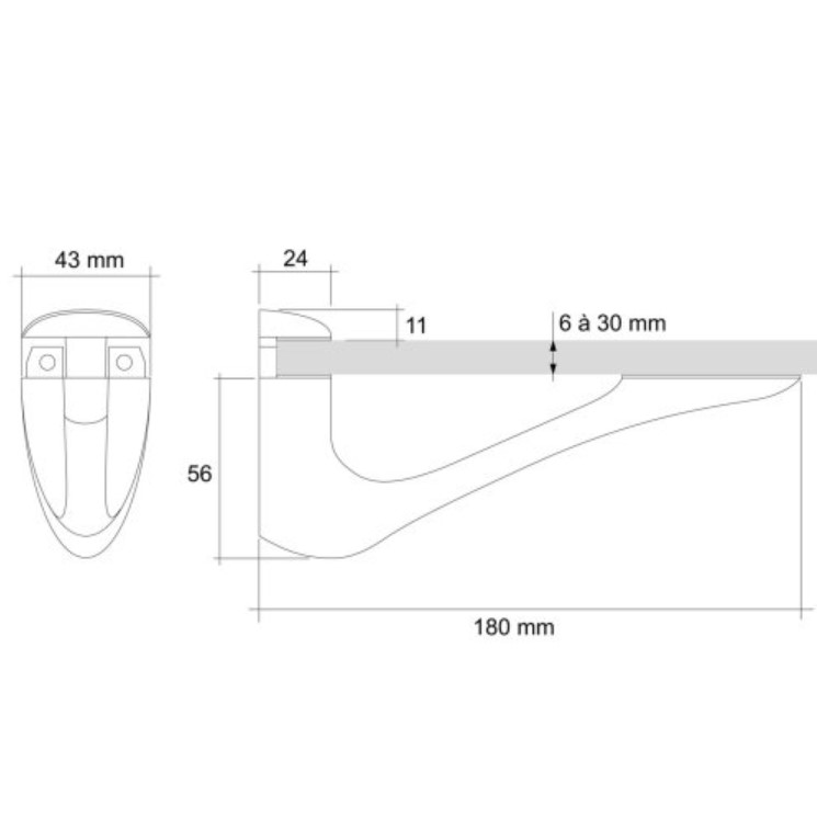 Un lot de 2 supports pour une tablette de 3 à 30 mm d’épaisseur en bois ou en verre.