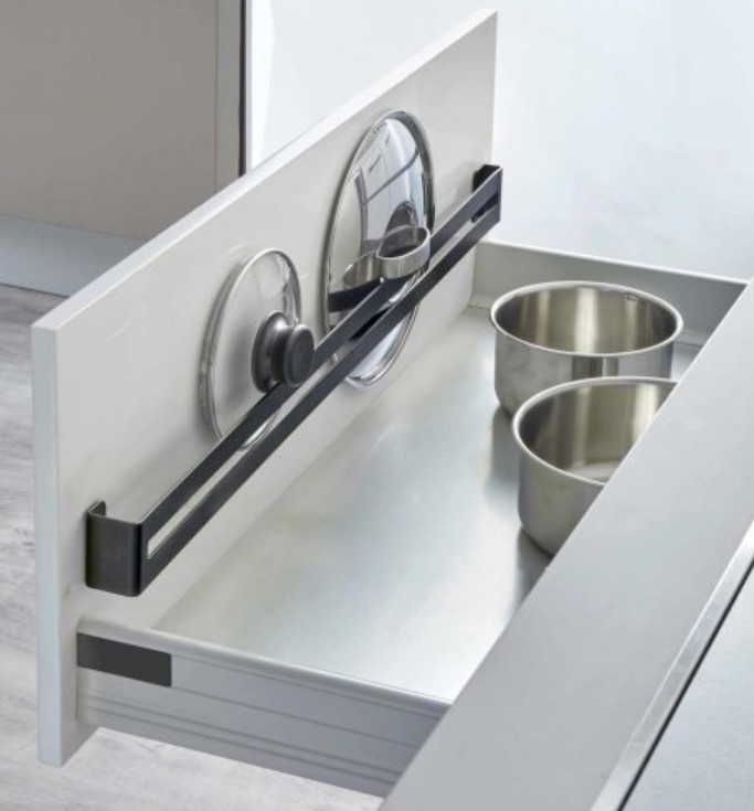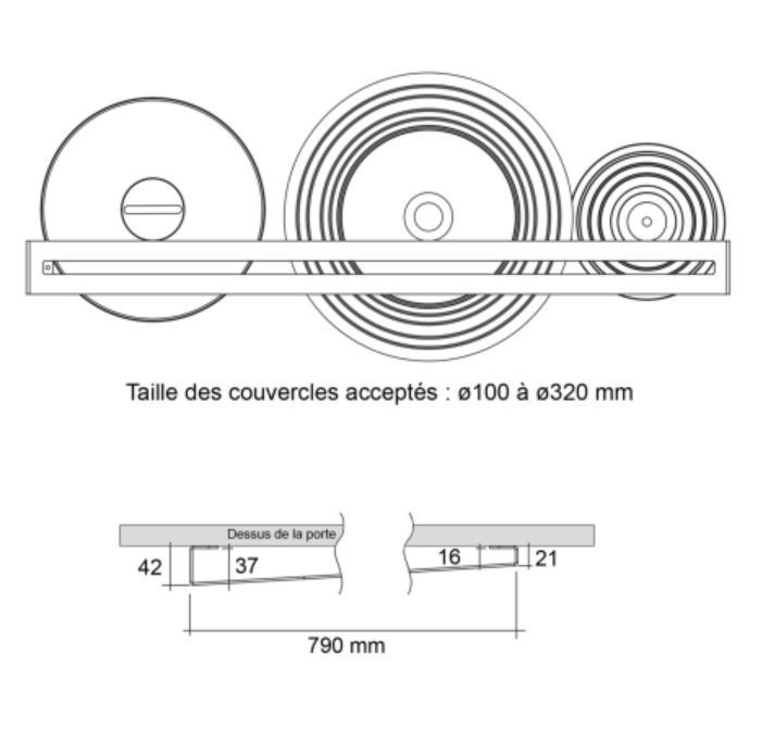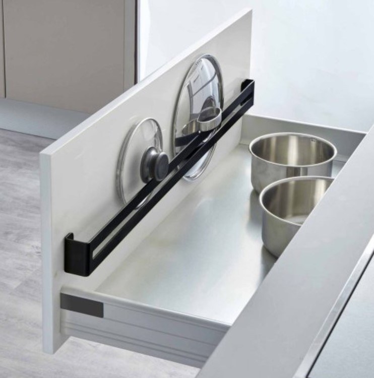 Une Barre en Acier très pratique pour stocker vos couvercles à l’intérieur d’un tiroir ou sur un mur ! Longueur 790mm