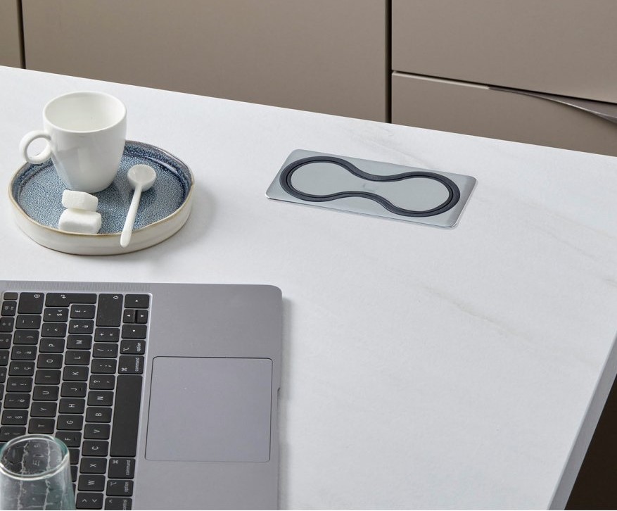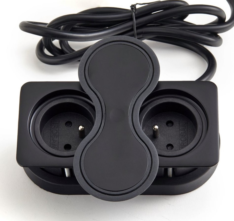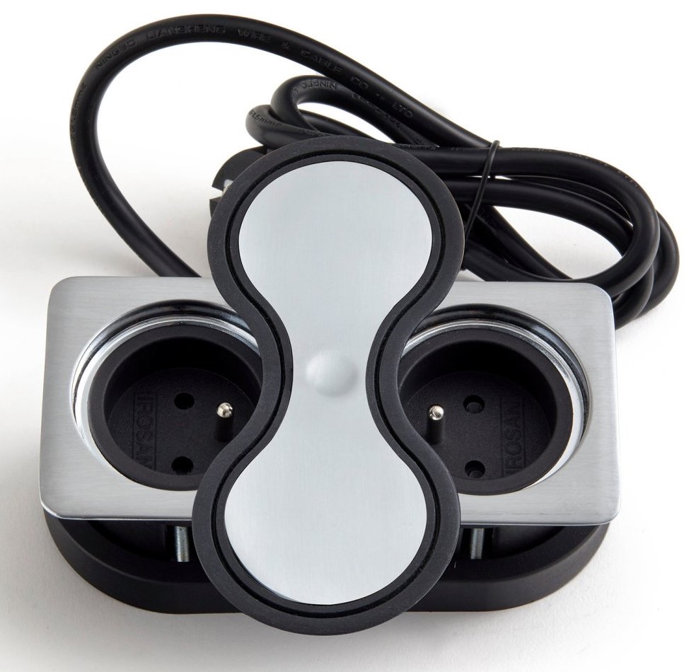 Nous vous proposons le bloc 2 prises Eight Square version IP44 extra plat 1,8mm, l’ ouverture du clapet est automatique par simple impulsion au centre.