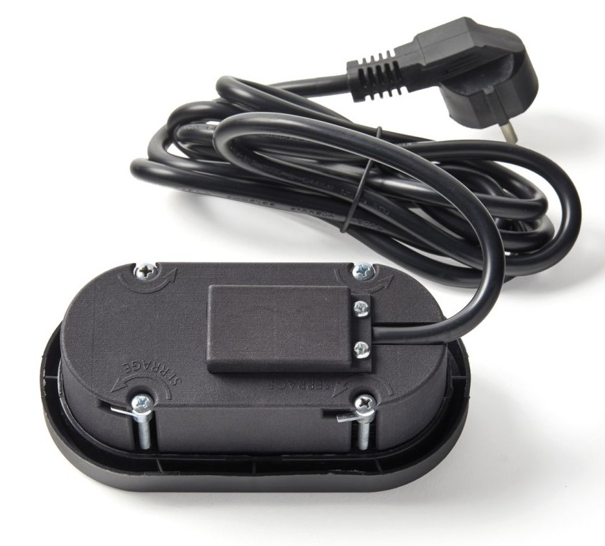 Il est important de préciser que le cable d’alimentation 3×1,5mm² de 1,5m avec fiche Euro peut être remplacé facilement par exemple avec les fils d’une ligne d’alimentation déjà en place.