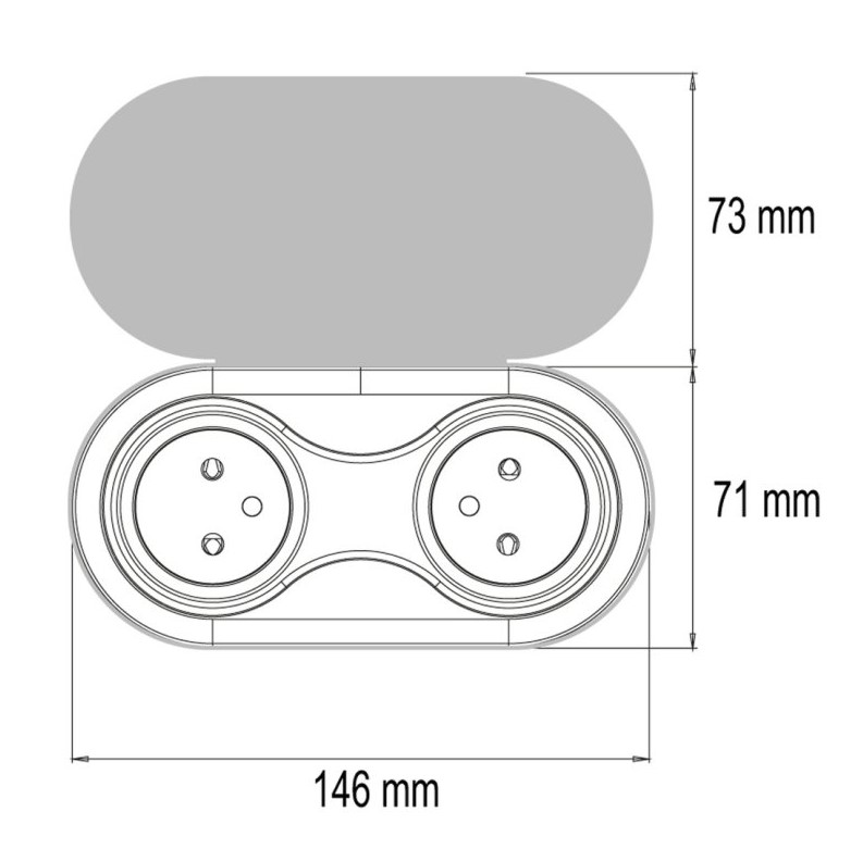 Classe 1, 16A-230V-2P+T, encastrement 60mm X 135mm (même dimensions que le modèle EIGHT). Profondeur d’encastrement 52,2mm.