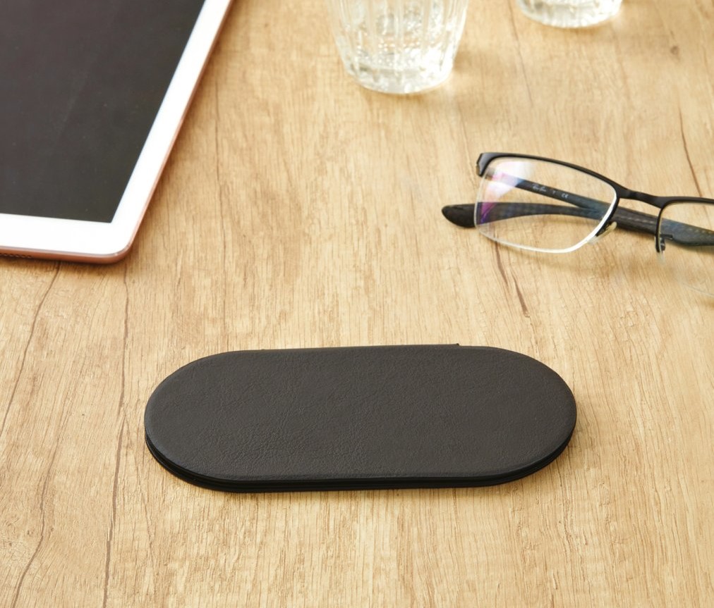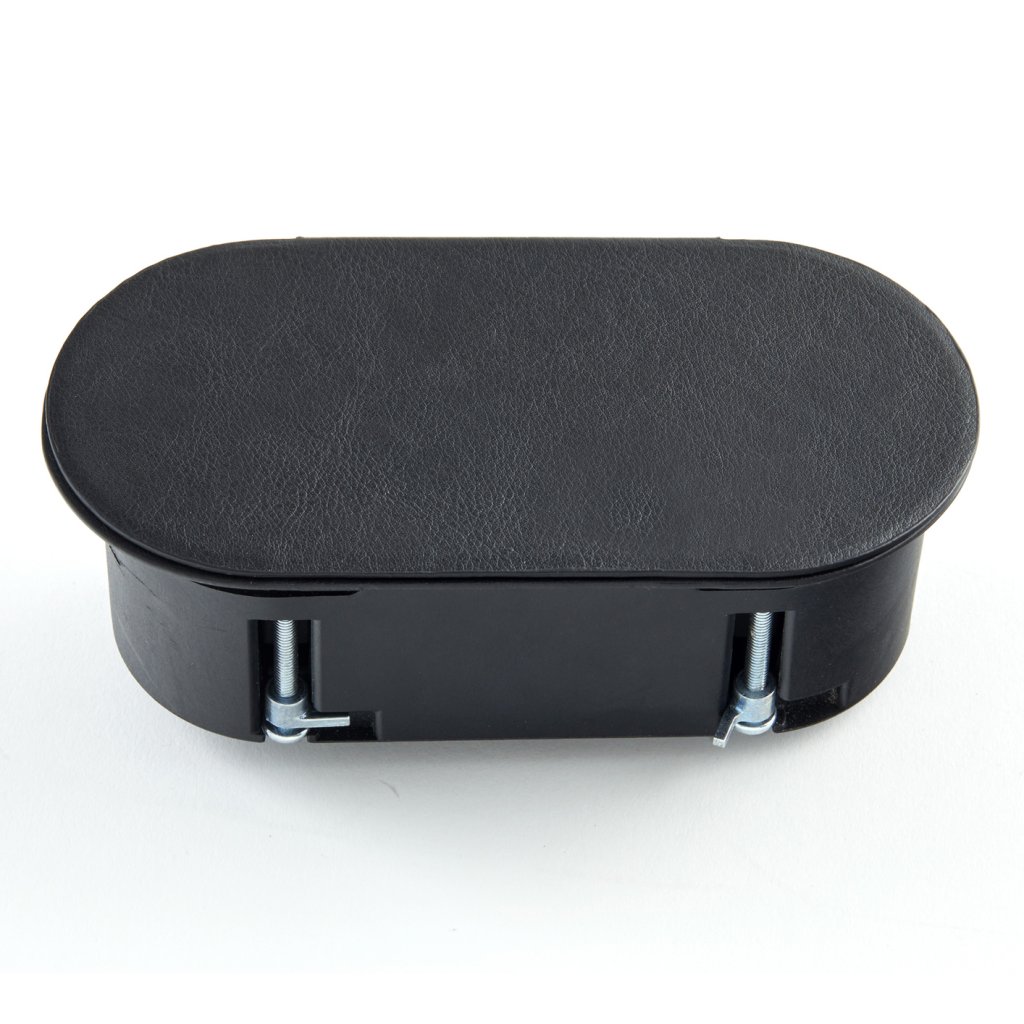 Il a une façade en Métal finition Noir Mat (RAL9005) et un clapet de fermeture aimanté en polyuréthane aspect cuir noir.