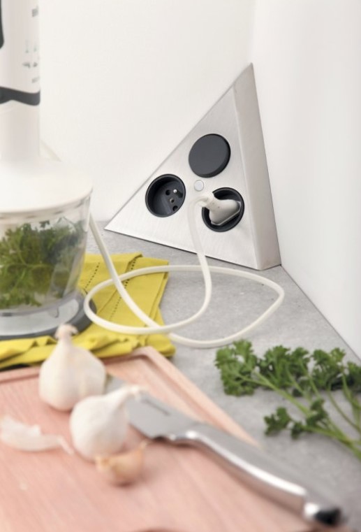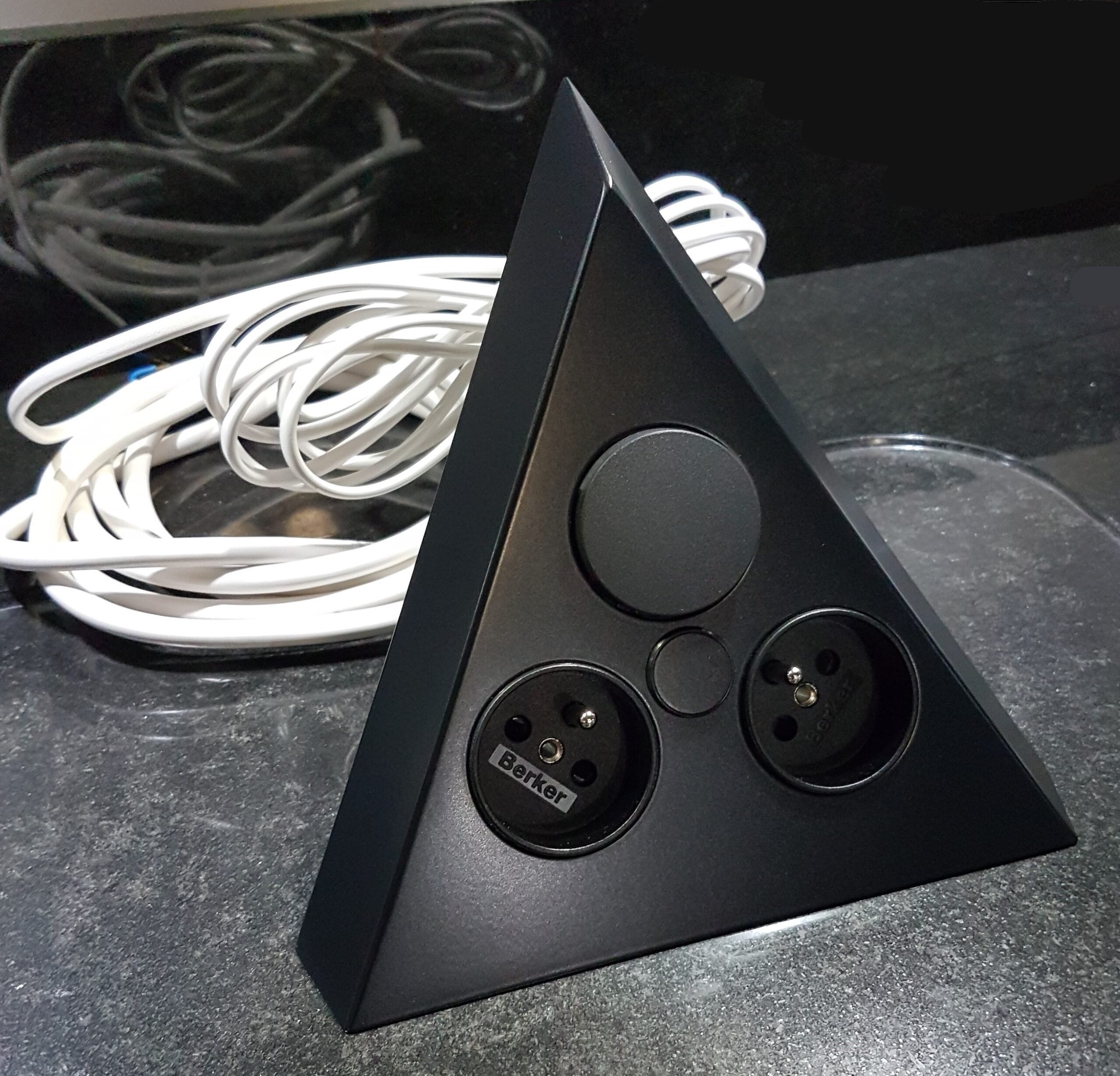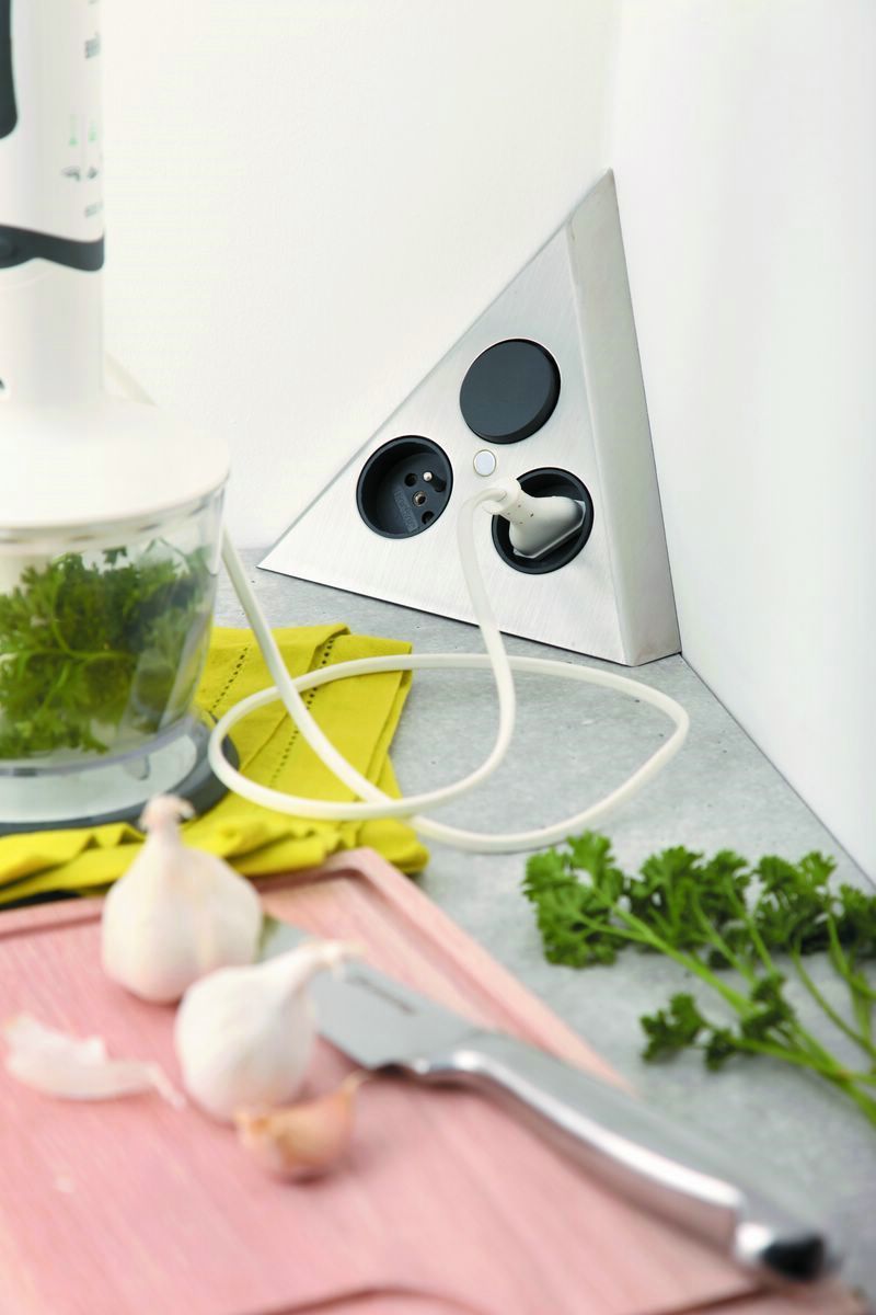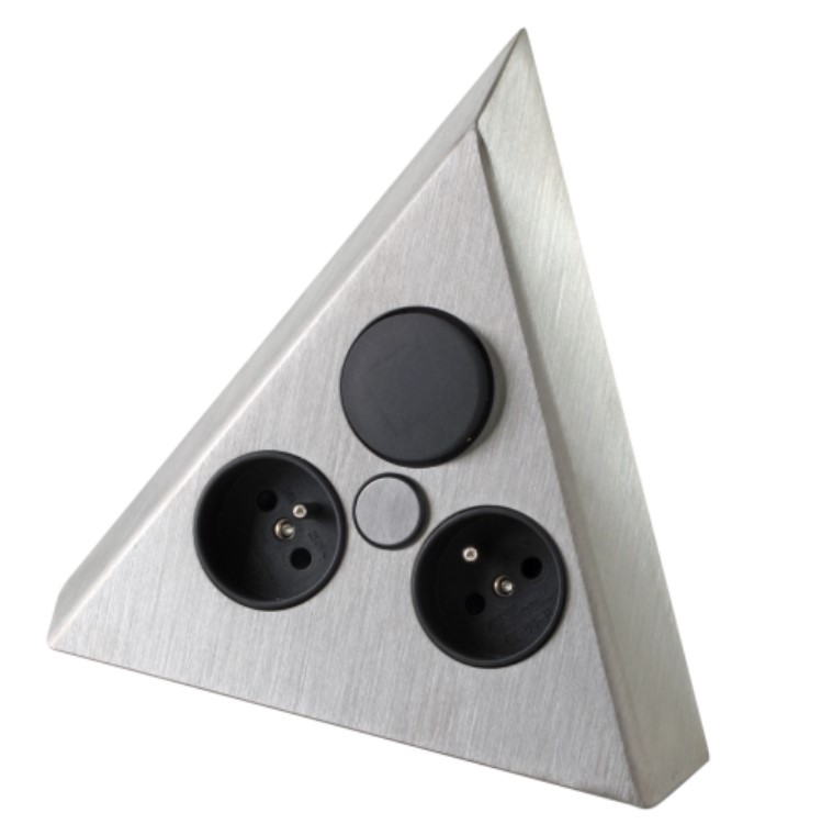 Ce Bloc 2 prises d’angle « triangle » s’installe facilement dans un angle de plan de travail ou de bureau, il est équipé d’un interrupteur idéal pour commander des spots ou des bandeaux leds d’ambiance