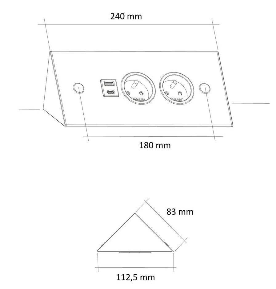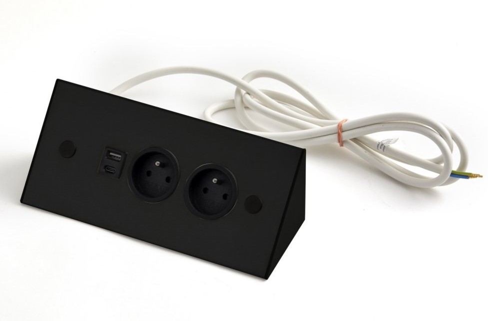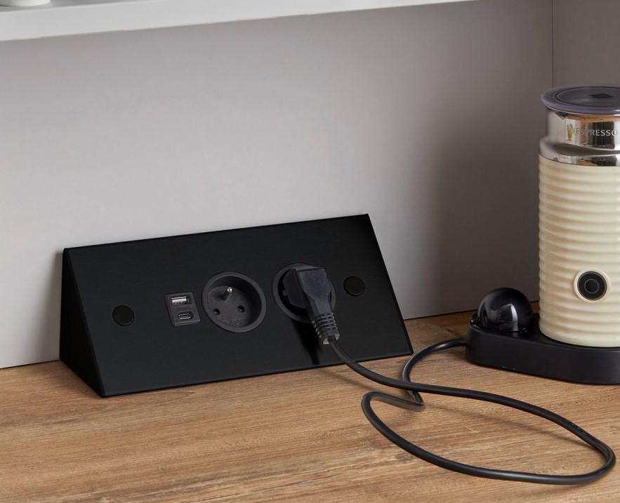 Bloc 2 prises d’angle finition Noir Mat avec port USB-A et USB-C !