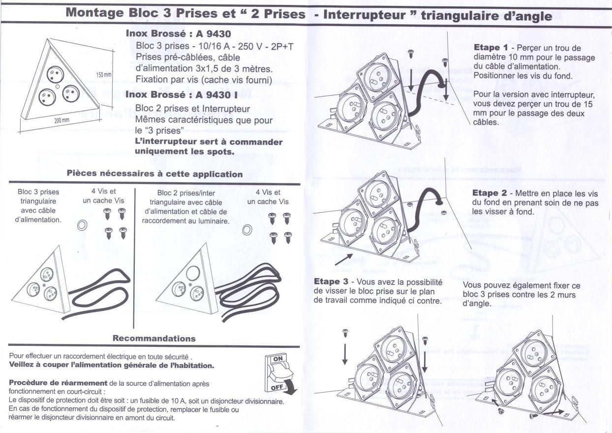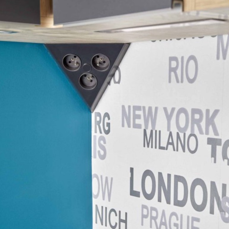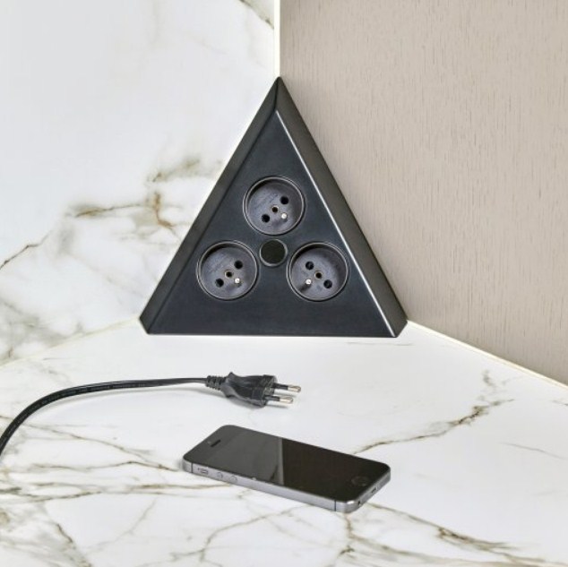 Nous vous proposons ce Bloc 3 prises d’angle en Métal finition laqué Noir Mat, sa forme « triangle » et sa hauteur de 15,4cm sont idéal pour s’adapter dans vos angles de cuisines, bureau, coin ordinateur etc…