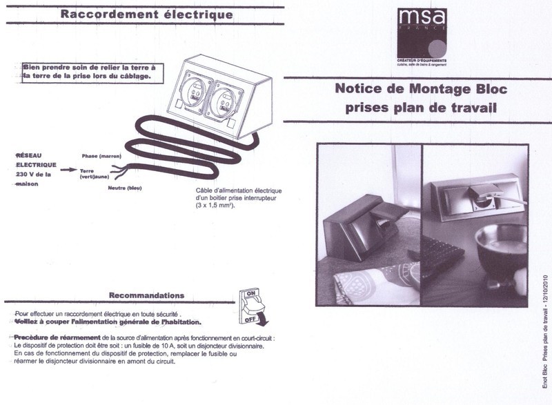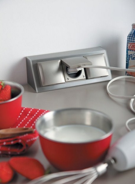 Le Bloc 3 prises pour plan de travail est en acier inox brossé, il possède des clapets « capots » de fermeture de prise en « ABS »