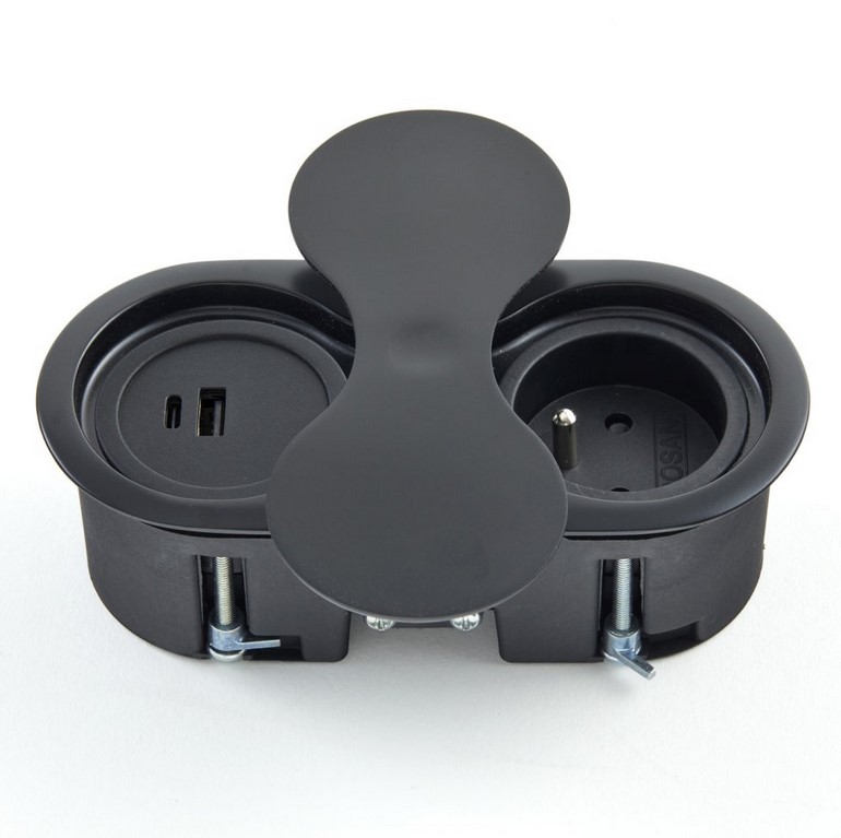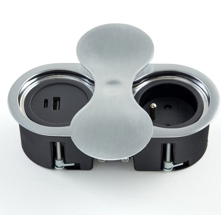 Nous vous proposons un bloc 1 prise + USB A et C affleurant « EIGHT » extra plat 1,2mm avec ouverture automatique du clapet par simple impulsion au centre.
