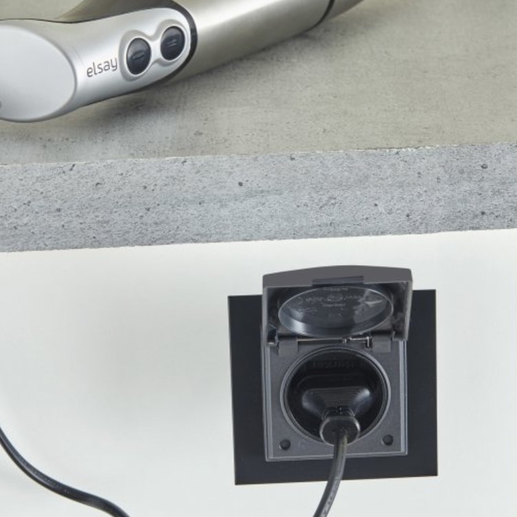 Ensemble complet avec boite de protection, fixation frontale par vis (fournies). Bloc prises 10/16A, 250 V. Diamètre de perçage 48mm.