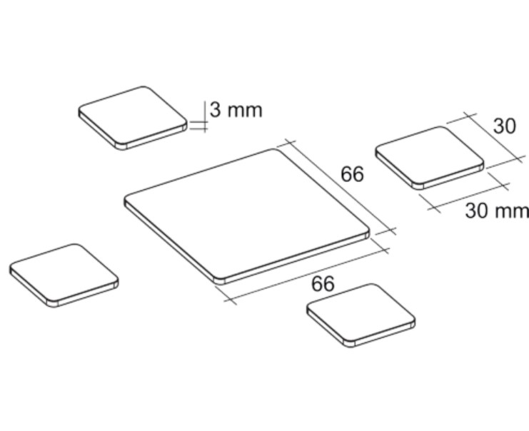 Il est composé de 5 carrés en acier inoxydable, un de 66mm x 66mm et quatres de 30mm x 30mm, épaisseur 3mm.