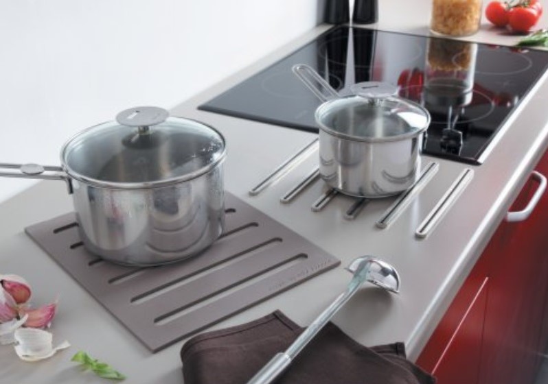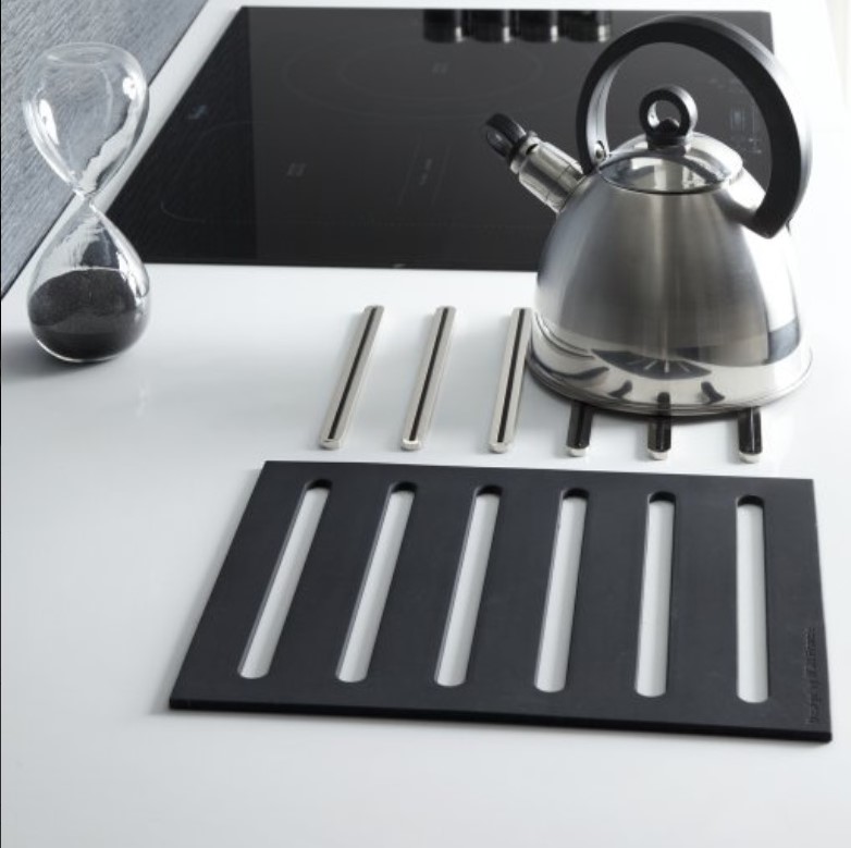 le Kit » 2 en 1 » repose casserole + dessous de plat est conçu pour poser vos casseroles, poêles et plats chauds sortant de cuisson sur tous type de plan de travail: stratifié, bois massif ou granit en évitant l’usinage de celui ci