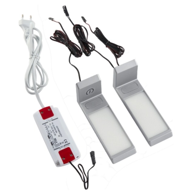 Comprenant 2 ou 3 spots led 3W éclairage blanc neutre 4000k, 12V cablés ( 2,5mètres) et connection rapide dont 1 avec interrupteur tactile