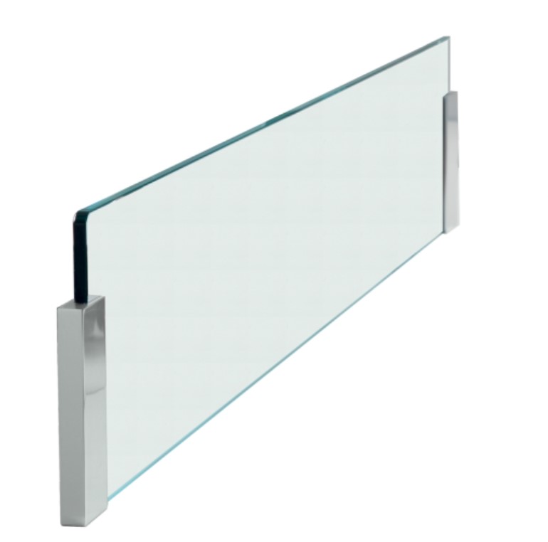 Hauteur du verre sécurit 170mm, épaisseur 8mm. livré avec 2 supports Chromés, fixation sous plan par vis comprise, trous de perçage 6mm.