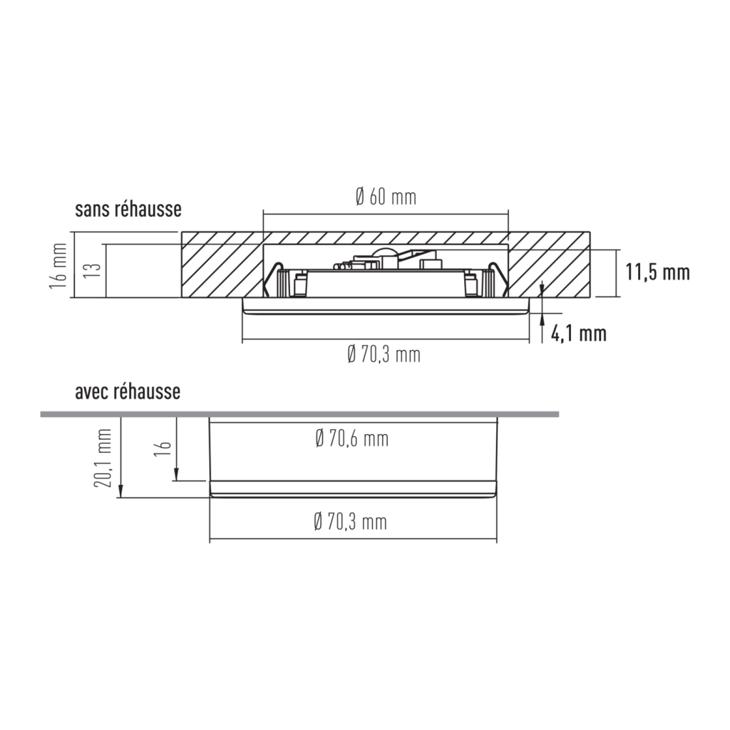 Kit 2 ou 3 spots Led 1,7W- 140lm avec réhausse pour pose en applique ou encastré (sans la réhausse) avec convertisseur et connexions rapide « connect light » (concept unique permettant de changer le spot sans intervention technique)