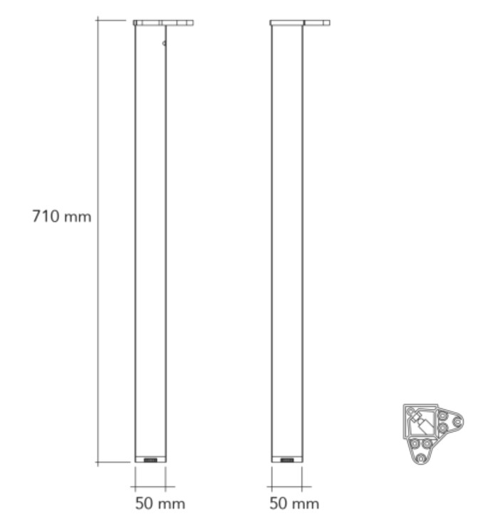 Lot de 4 pieds de table carrés en acier de 50mm x 50mm, Hauteur 71cm.
