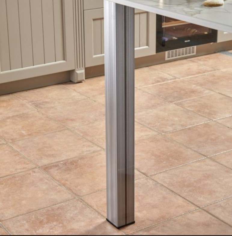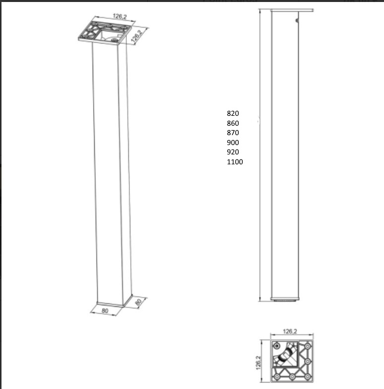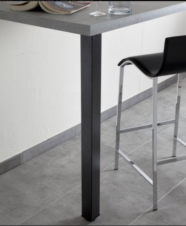 Pieds de snack carré en acier 80mm x 80mm sont disponibles en 6 Hauteurs: 82cm, 86cm,87cm, 90cm,92cm et 110cm et jusqu’à 4 coloris: chromé, inox brossé, noir mat, acier brut.