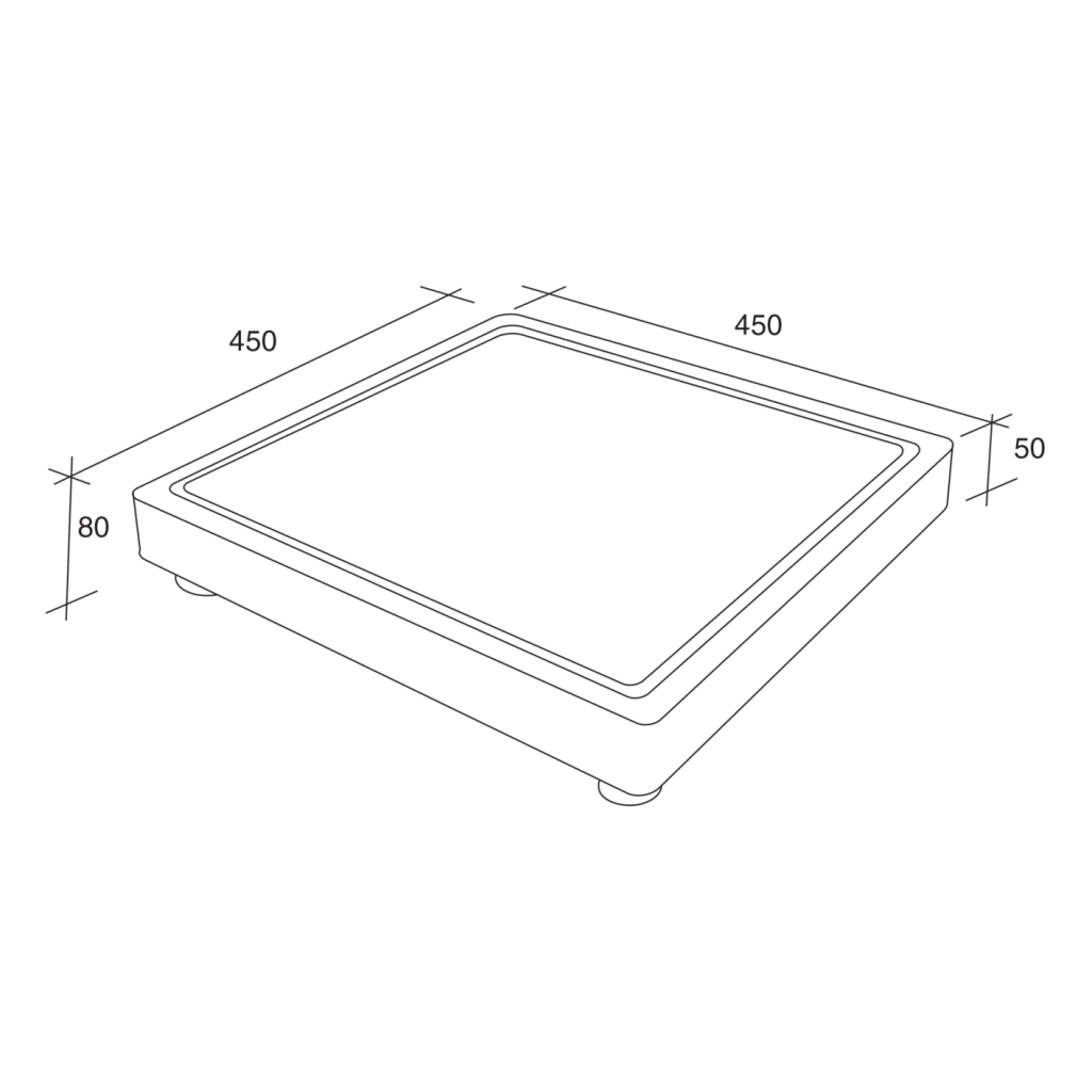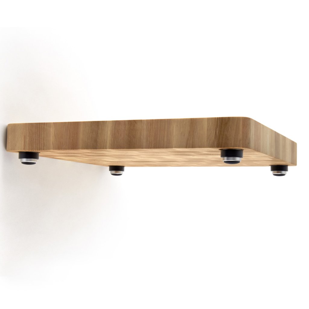 Planche billot en hêtre avec 4 pieds en inox de dimensions 45cm x 45cm épaisseur du bois 5cm