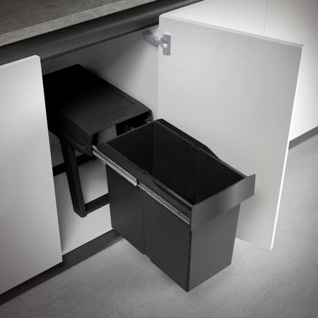 Poubelle 1 bac de 30 Litres sortie totale en plastique recyclé coloris Noir.
