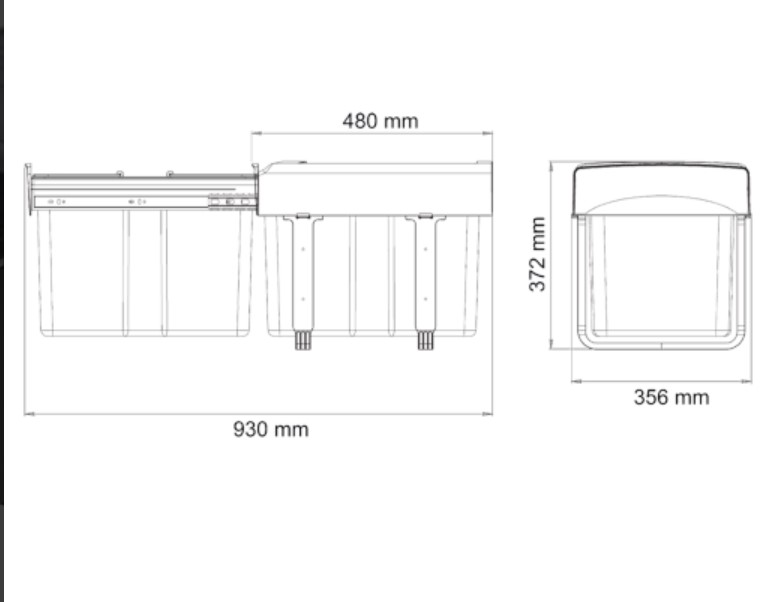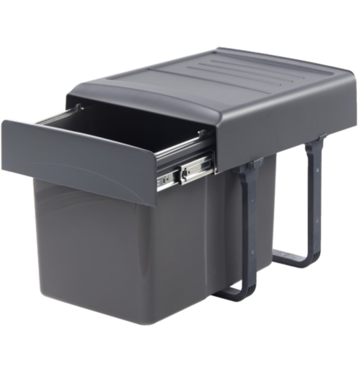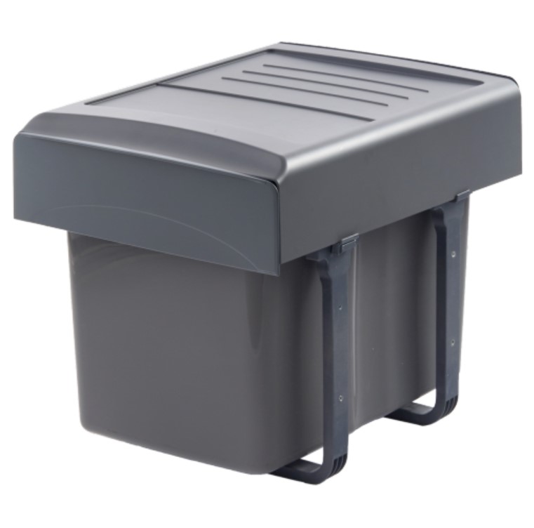 Poubelle 1 Bac de 34 Litres à sortie totale et fermeture douce « soft closing ». Coloris Gris Orion.