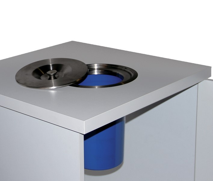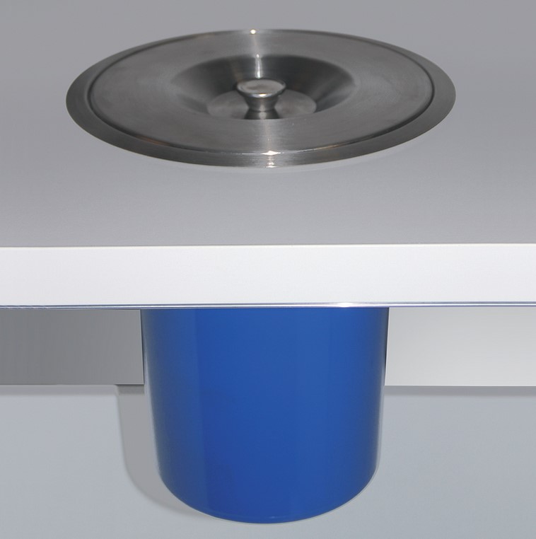 Poubelle Encastrable avec couvercle et bague de propreté en acier inox avec un seau plastique amovible de 8 Litres.