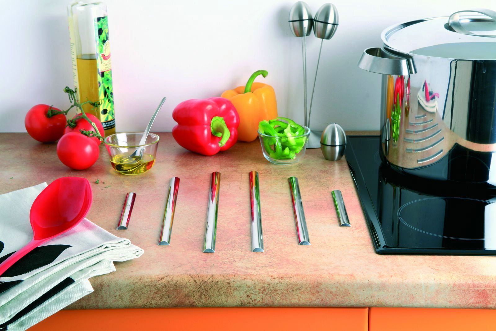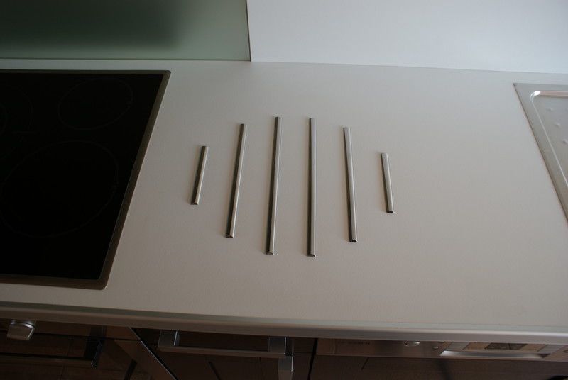 Un ensemble de Profilé inox « repose casserole » composé de 6 baguettes de protection en acier inoxydable