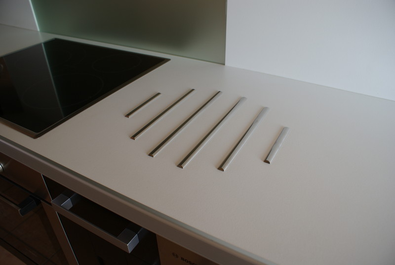 Pour tous type de plans de travail: postformé, bois massif, quartz ou granit en évitant l’usinage de celui ci.