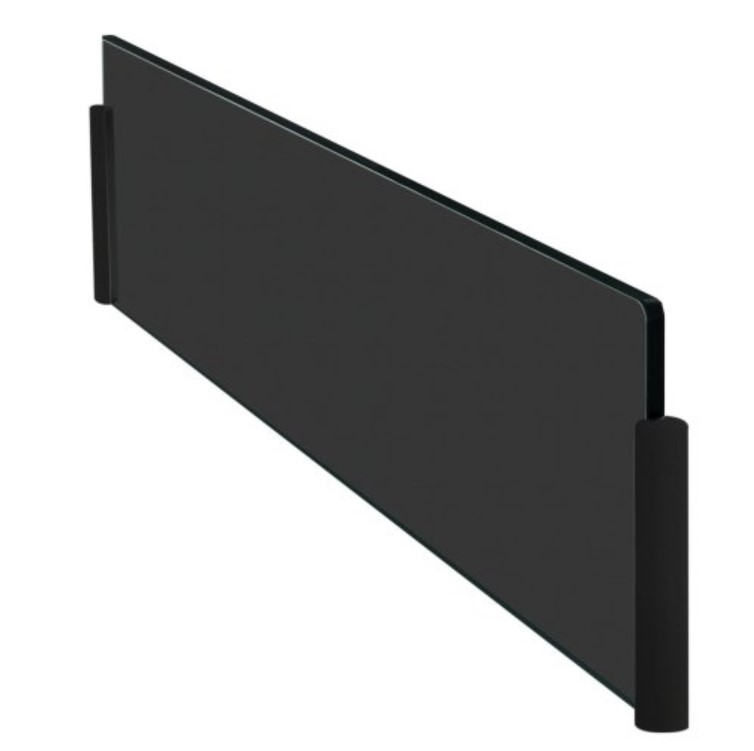 Kit séparateur en verre trempé Noir opaque épaisseur 8mm avec Deux supports en métal rond coloris noir, fixation sous plan.