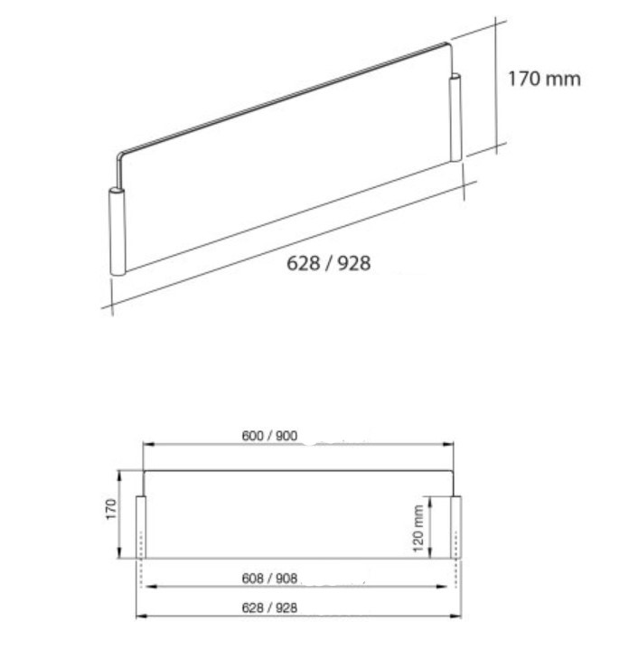 Existe en verre 60cm ou 90cm de longueur, hauteur 17cm.