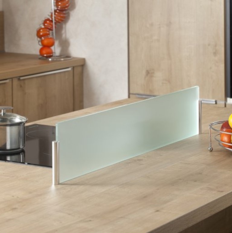 Les Kit séparateur îlot en verre trempé sont conçus pour protéger votre plan de travail des projections de cuisson. Le verre est transparent mais existe également en verre satiné uniquement en 900mm.