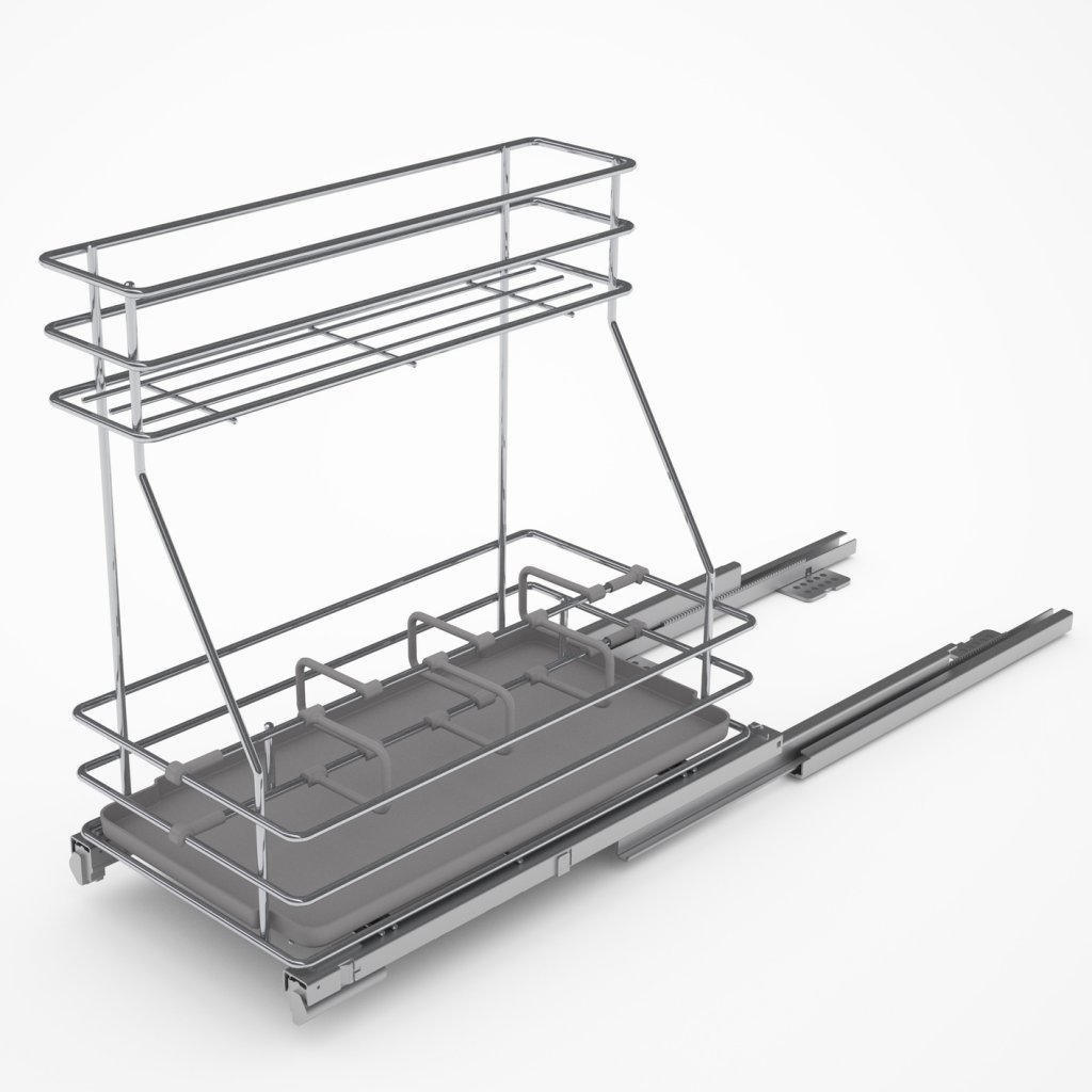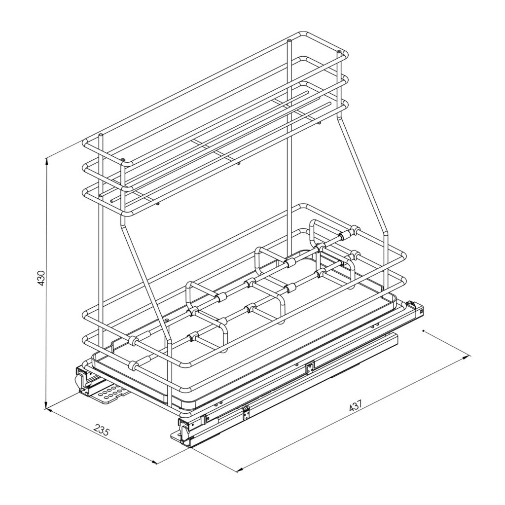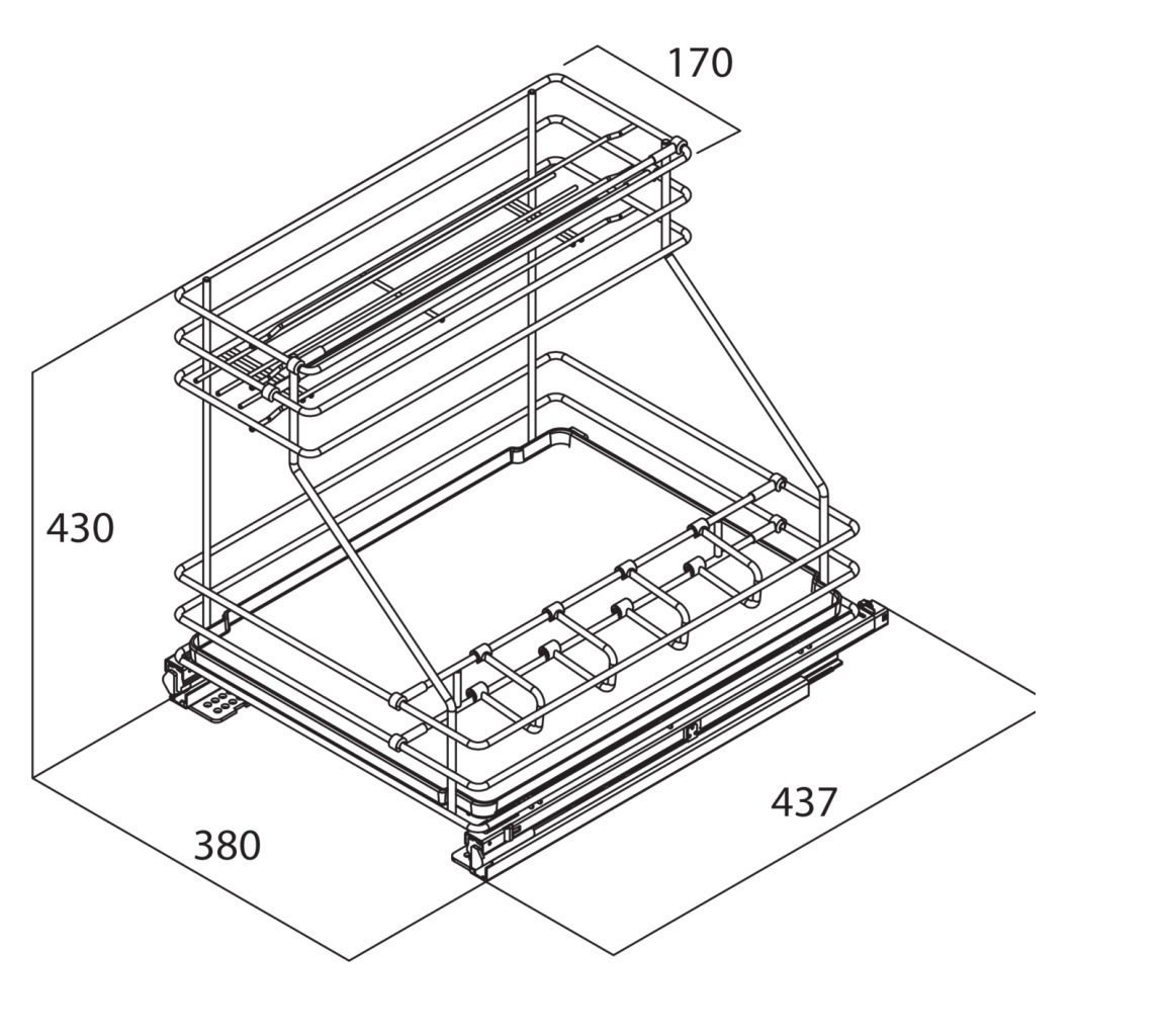 Existe en deux largeurs: 250mm pour meuble de 300mm et largeur 380mm pour meuble de 450mm ( bien vérifier la largeur de passage si vous avez un montant central sur un meuble à 2 portes !)