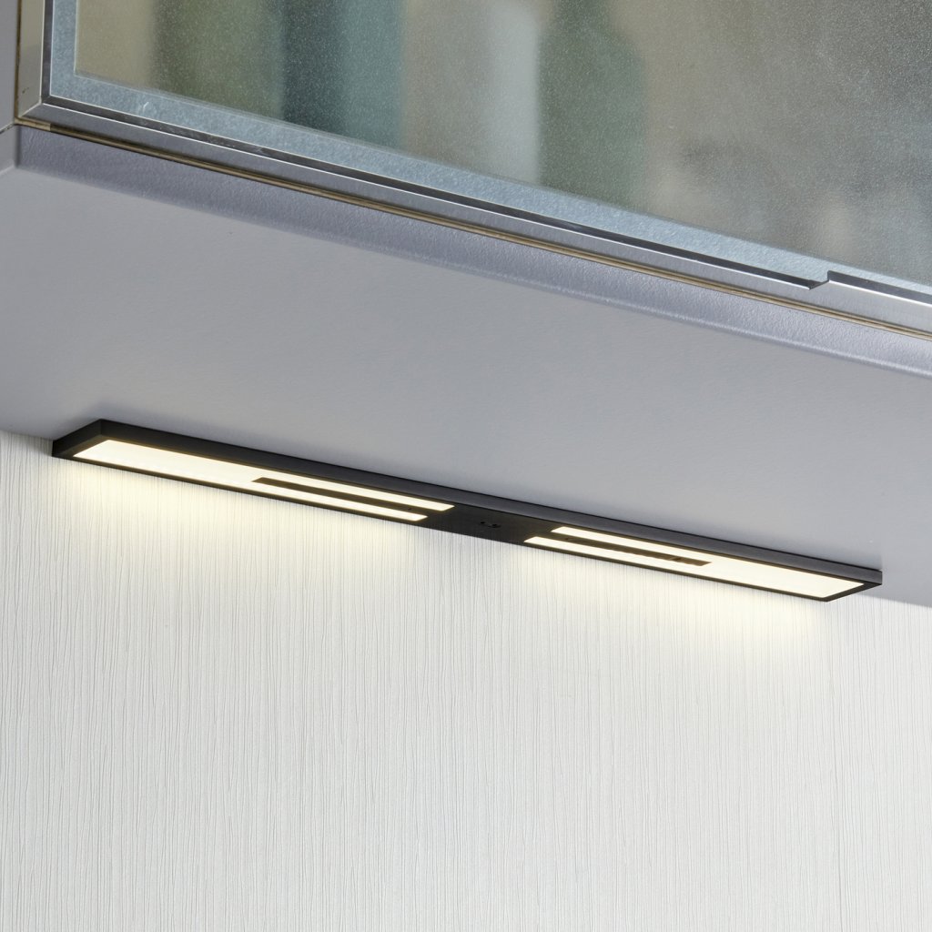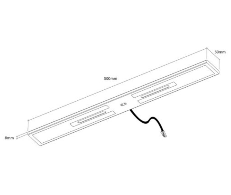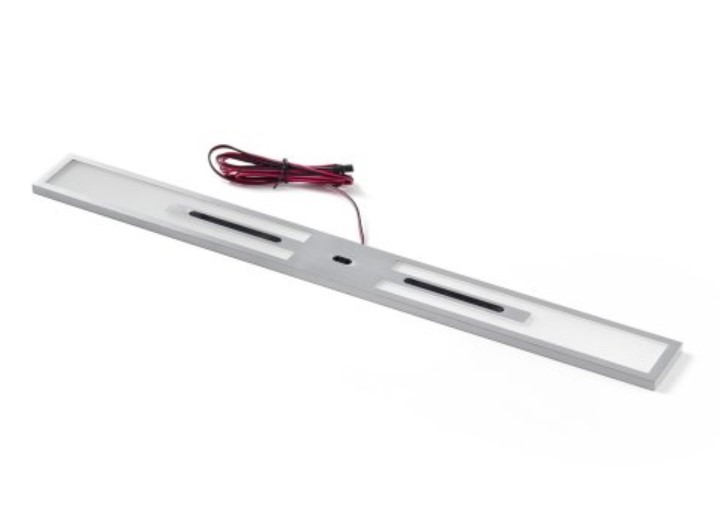 Réglette Led 12W (12V DC) avec interrupteur infra-rouge et variateur d’intensité (par passage prolongé sous l’interrupteur). Le Convertisseur est fournis dans le kit. Dimensions de la réglette: 500mm x 50mm x 8mm.