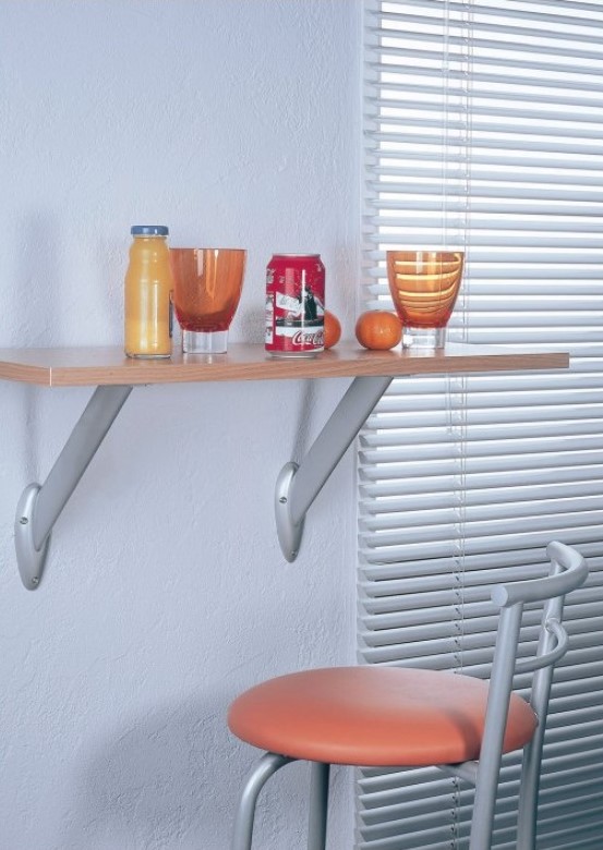 Nous vous proposons pour supporter votre coin repas snack, ce support mural « VELA » incliné à 45° d’une hauteur de 27cm avec un profil aluminium ovale.