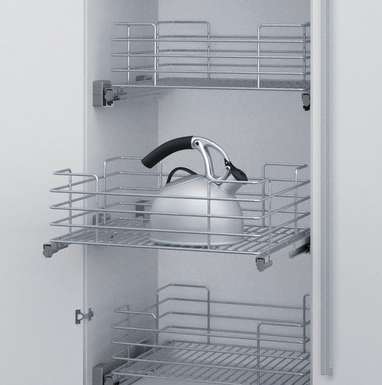 Ce tiroir en fil coulissant est conçu pour s’installer dans un meuble à porte ouvrante sur charnière sous ou en remplacement d’une étagère. A choisir pour meubles de largeur 450mm ou 600mm avec panneau d’épaisseur de 16 à 20mm.
