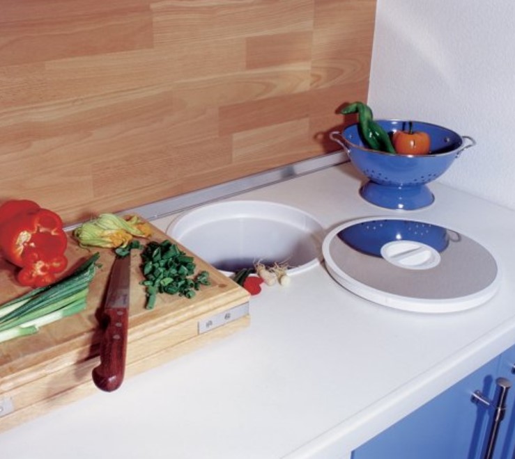 Vide déchets encastrable avec couvercle et corps en ABS avec seau plastique 13 litres (fourni).