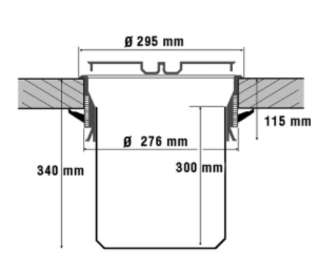 Il est d’un diamètre de 295mm encastrable dans un plan de travail ( diamètre d’encastrement 276mm).